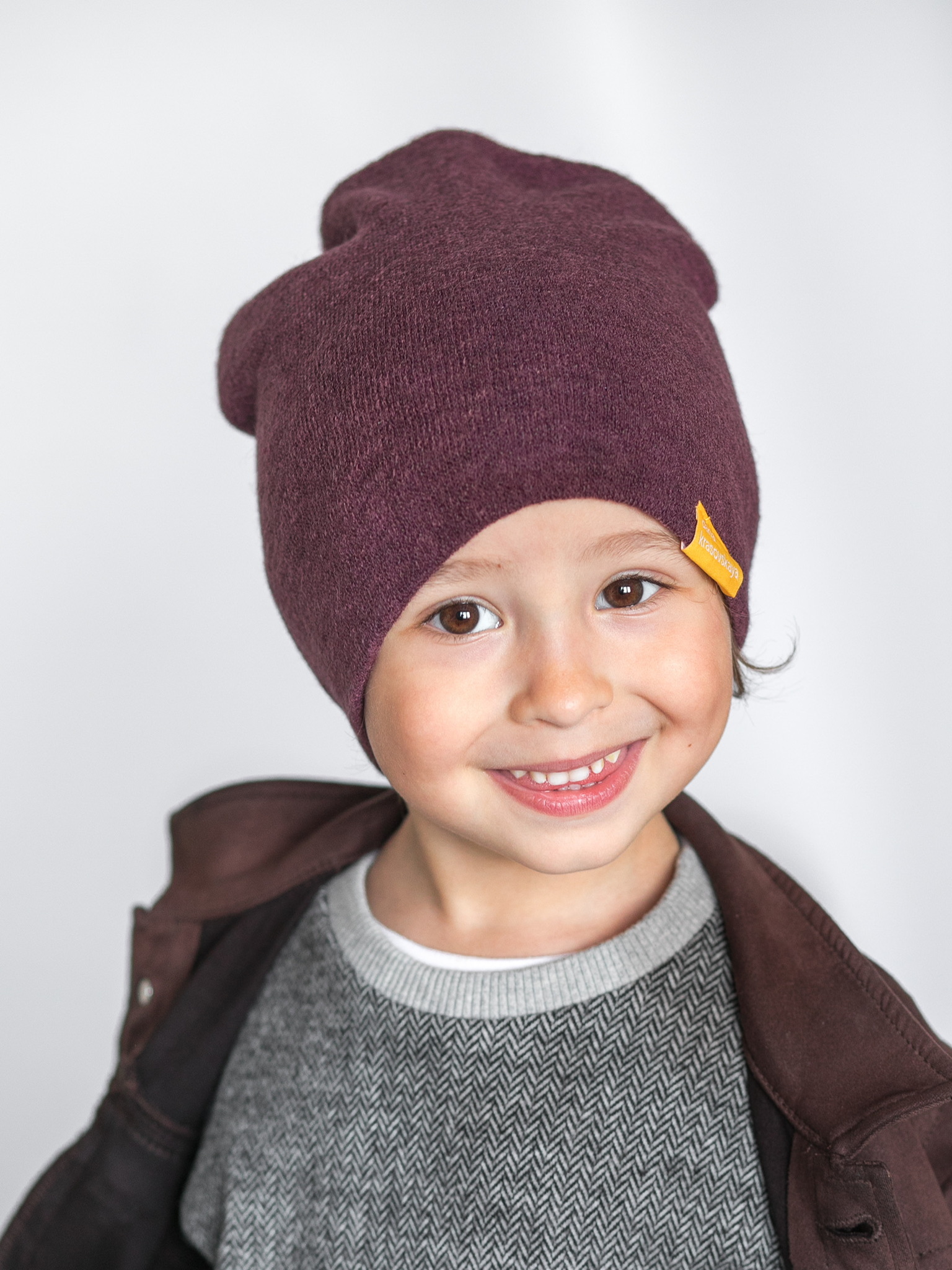 Двухслойная шапка из тонкого, но при этом очень теплого и мягкого шерстяного трикотажа. Отлично сочетаются комплектом с варежками и снудом.