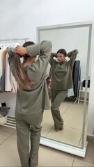 Брюки свободные на резинке. Лонгслив и брюки можно носить отдельно, составляя с ними комплекты.