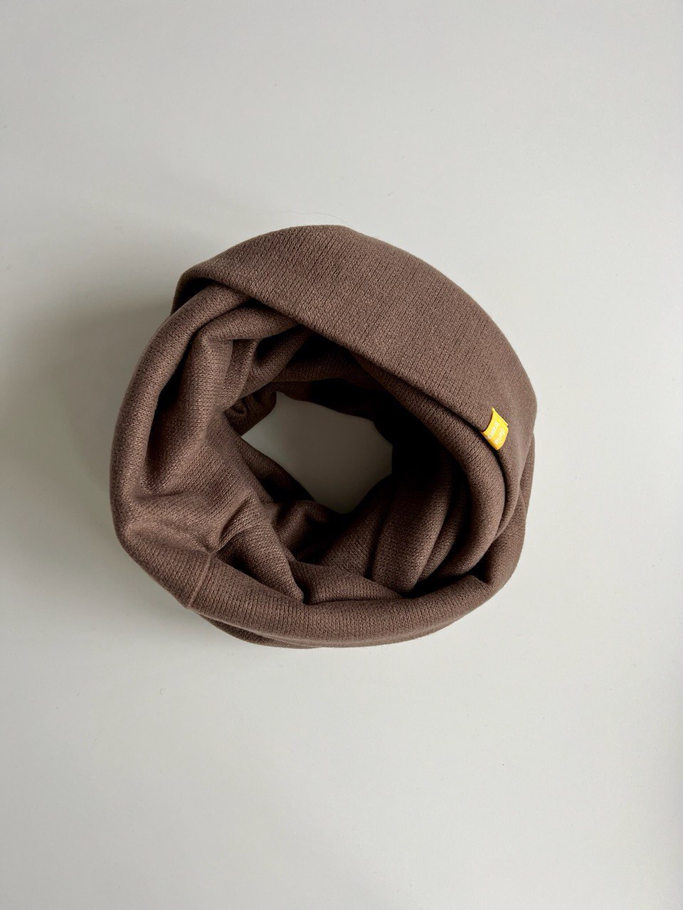Снуд сшит из плотного шерстяного итальянского трикотажа, подходит не только на прохладную, но и на морозную погоду. В отличие от синтетики в нем не холодно на улице, а в помещении ткань продолжает греть и дышать.